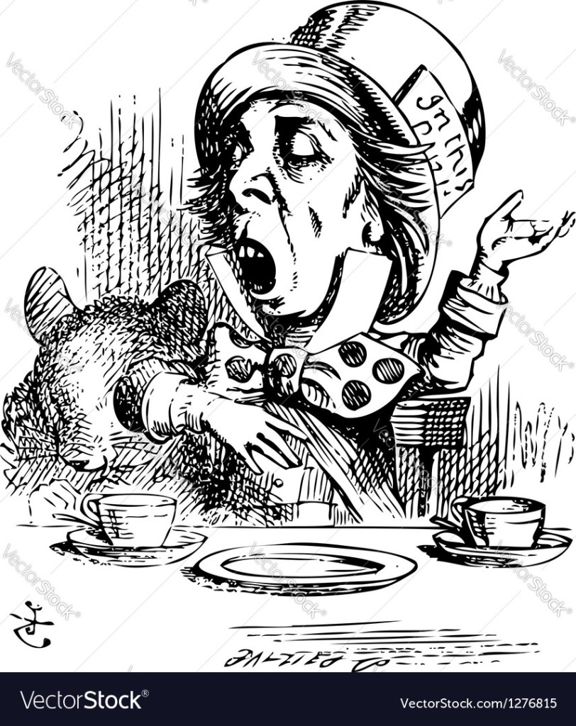 “Why is a Raven like a writing desk? Have you guessed the riddle yet?” the Hatter said, turning to Alice again. “No, I give up,” Alice replied, “What’s the answer?” “I haven’t the slightest idea,” said the Hatter.